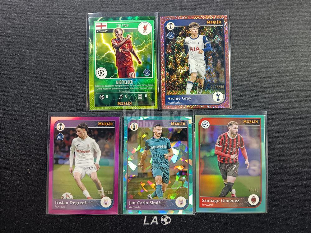 【LA足球】2024-25 Topps Merlin 欧冠 梅林 RC新秀 阿奇 格雷 希门尼斯 德格里夫 恩约尼 扬 卡洛 西米奇 梅林玩家特卡 青碎冰折 玫瑰金碎点折 粉折 /75/199/250编 大比例 SP 5张打包 433O