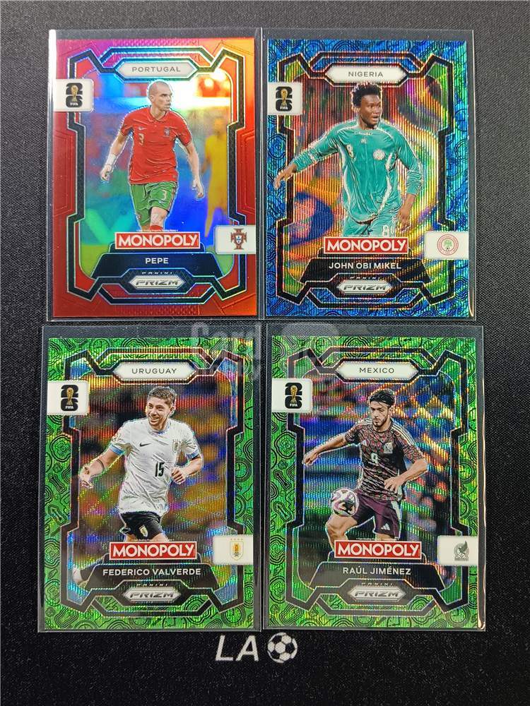 【LA足球】2026 Panini Monopoly Prizm FIFA World Cup 大富翁 世界杯PZ 佩佩 劳尔 希门尼斯 巴尔韦德 约翰 米克尔 Base 红折 四角绿波纹折 四角蓝波纹折 4张打包 斯坦李得到